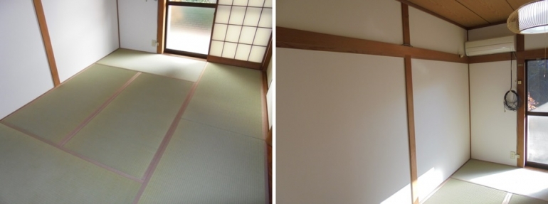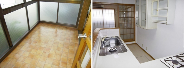 和室については、M様たっての希望で砂壁をクロス仕上げに変更。基調がホワイトになった為、新調した畳と相まって明るい部屋になった気が致します。水周りのリフォームは今回見送り(後に洗面台は交換致しました)、基本的にはハウスクリーニングで蘇らせることを試みました。実際、キッチン天板などはハウスクリーニングで回復致しましたし、写真にはございませんが、浴室も換気扇等もハウスクリーニングで再生することが出来ました。