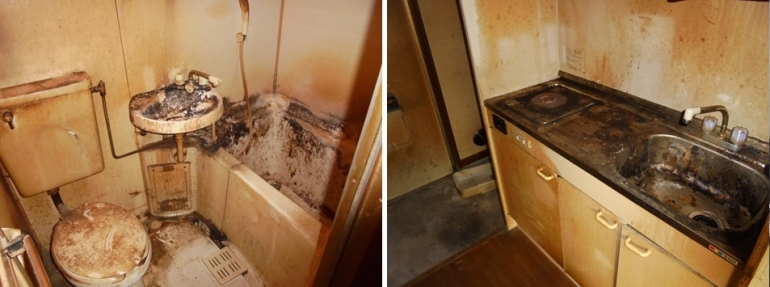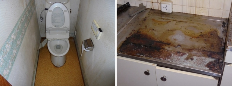長期に渡っての独身男性一人住まい。ヘビースモーカーで掃除はしない...。入居者のご生活ぶりが容易に想像できました。